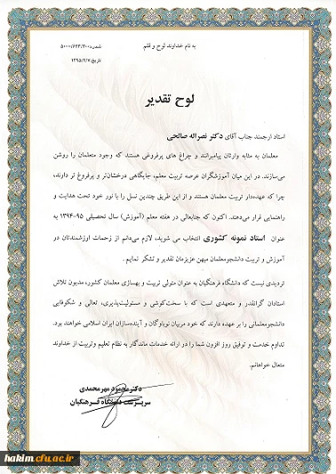 امتیاز دهید : انتخاب جناب آقای دکتر صالحی به عنوان مدرس نمونه کشوری 3 شنبه 11 اردیبهشت 1395 ساعت 12:38