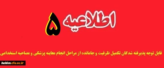 قابل توجه پذیرفته شدگان تکمیل ظرفیت و جامانده از مراحل انجام معاینه پزشکی و مصاحبه استخدامی 2