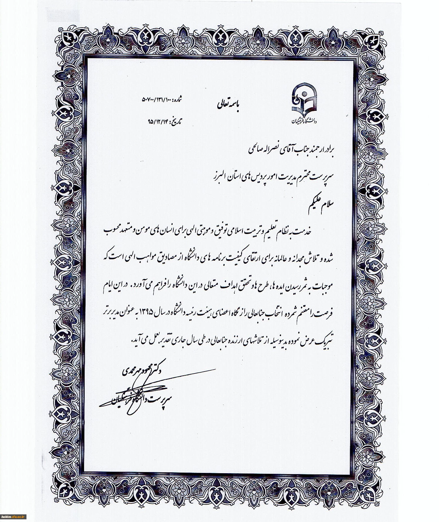 تقدیر از دکتر صالحی به عنوان مدیر برتر استانی سال 1395، در سیزدهمین اجلاس مدیران استانی دانشگاه فرهنگیان 3