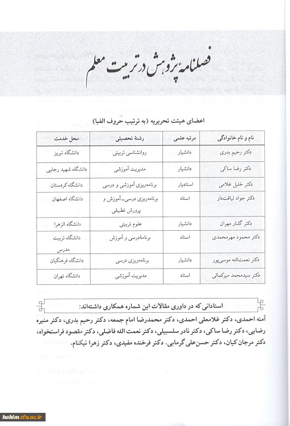 اولیـن شماره فصلنامه پـژوهش در تربیت معلم منتشر شد 3