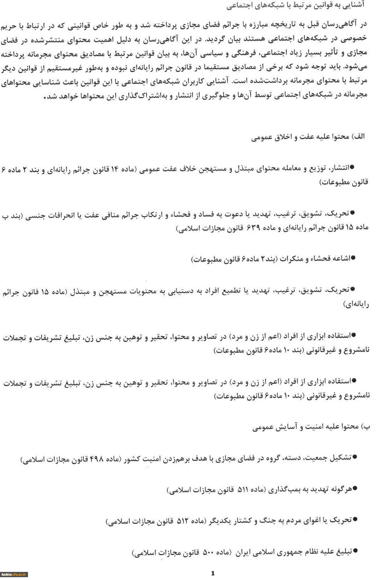 اطلاعیه مهم قوانین و مقررات مربوط به شبکه های اجتماعی و فضای مجازی