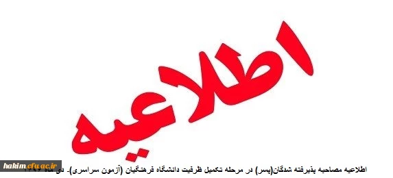 اطلاعیه مصاحبه پذیرفته شدگان(پسر) در مرحله تکمیل ظرفیت دانشگاه فرهنگیان (آزمون سراسری)- دی ماه 1396 2