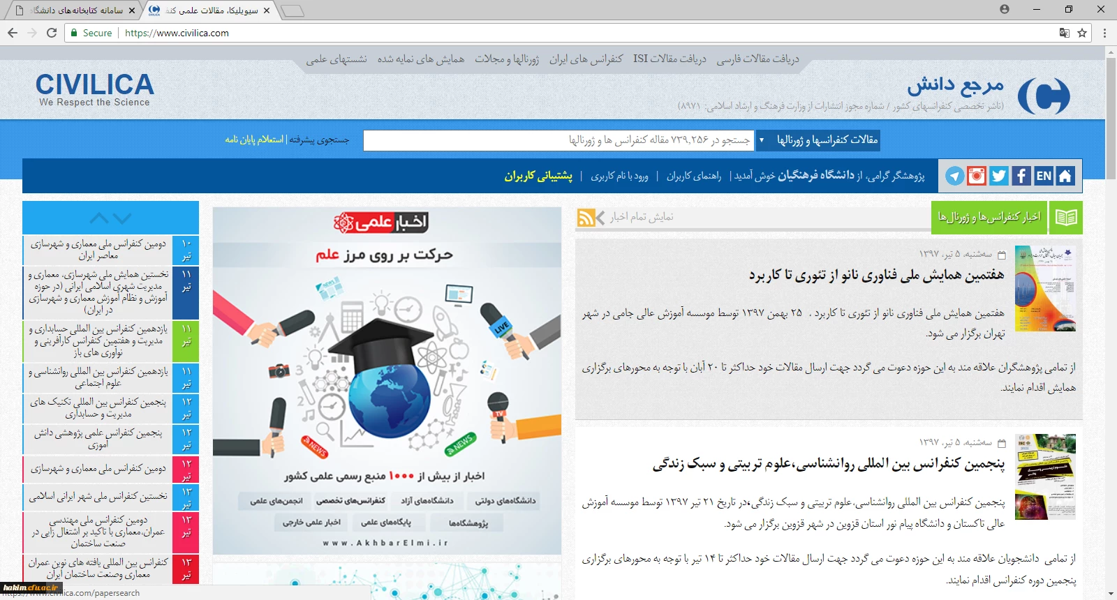 ایجاد امکان دسترسی به مقالات پایگاه سیویلیکا 2
