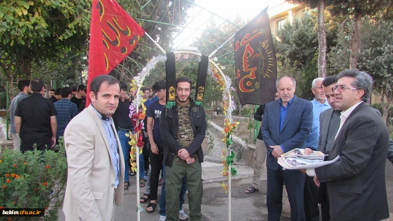 مراسم بدرقه دانشجویان پردیس حکیم فردوسی البرزجهت شرکت در"پیاده روی عظیم زائران کربلا" برگزار گردید. 2