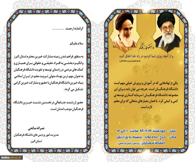 امتیاز دهید : برگزاری اولین نشست بنیاد خیرین حامی دانشگاه فرهنگیان استان البرز 2 شنبه 25 آبان 1398 ساعت 12:51