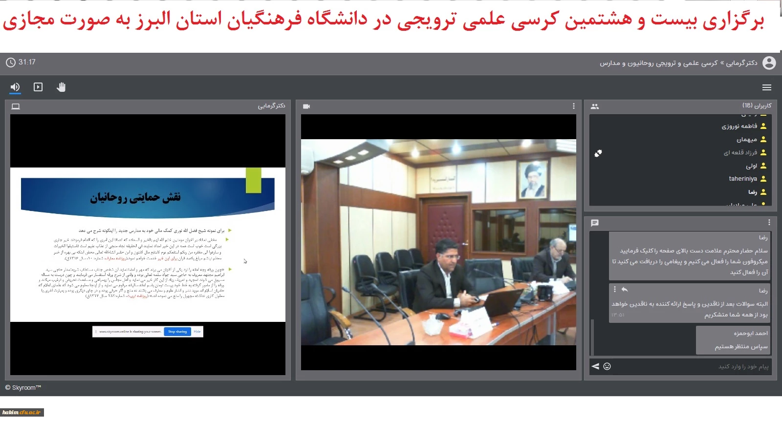 امتیاز دهید : برگزاری بیست و هشتمین کرسی علمی ترویجی در دانشگاه فرهنگیان استان البرز به صورت مجازی 2 سهشنبه 16 اردیبهشت 1399 ساعت 14:54