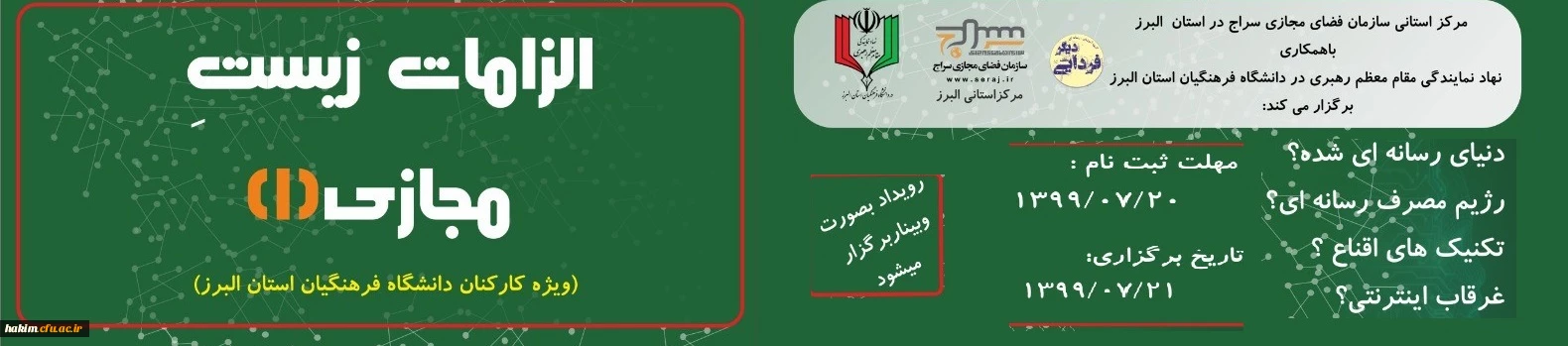 امتیاز دهید : برگزاری دوره آموزشی الزامات زیست مجازی توسط نهاد نمایندگی مقام معظم رهبری 2 دوشنبه 14 مهر 1399 ساعت 13:49