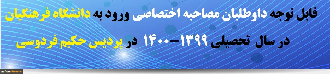 قابل توجه داوطلبان مصاحبه اختصاصی ورود به دانشگاه فرهنگیان در سال تحصیلی 1399-1400 در حکیم فردوسی 2