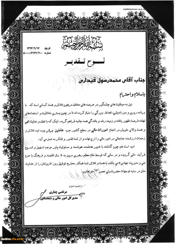 لوح تقدیر به عامل مالی