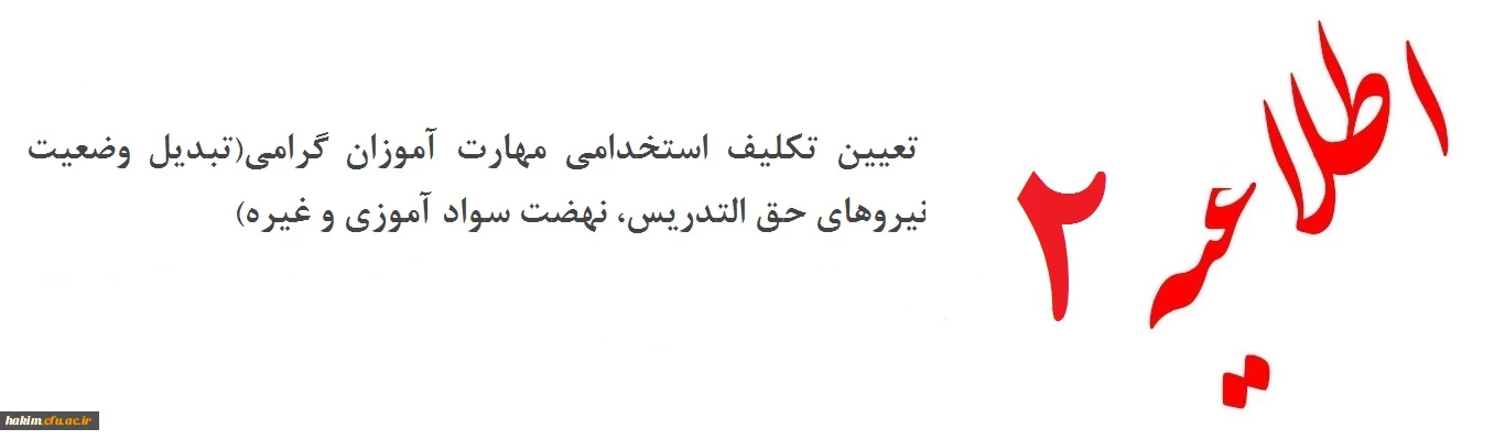 اطلاعیه شماره ۲ سری دوم تعیین تکلیف استخدامی مهارت آموزان گرامی(تبدیل وضعیت نیروهای حق التدریس، نهضت سواد آموزی و غیره )* 2