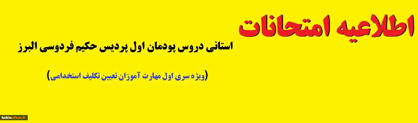 امتیاز دهید : اطلاعیه امتحانات استانی دروس پودمان اول پردیس حکیم فردوسی البرز 2 دوشنبه 30 فروردین 1400 ساعت 14:32