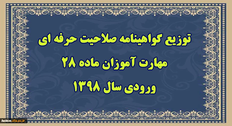 امتیاز دهید : توزیع گواهینامه صلاحیت حرفه ای مهارت آموزان ماده 28 ورودی سال 1398 از 23 شهریور 2 دوشنبه 22 شهریور 1400 ساعت 10:42