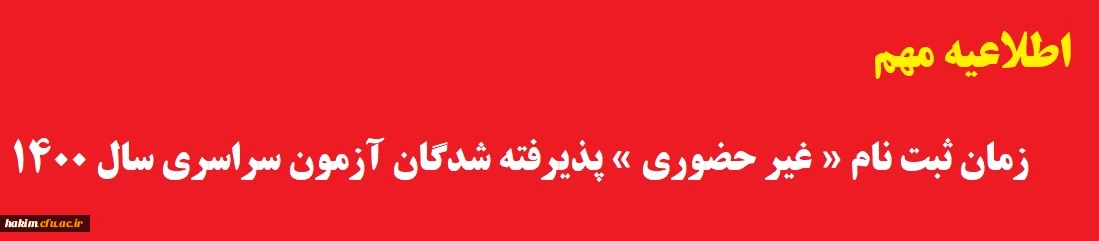 امتیاز دهید : زمان ثبت نام « غیر حضوری » پذیرفته شدگان آزمون سراسری سال 1400 2 سهشنبه 6 مهر 1400 ساعت 11:06