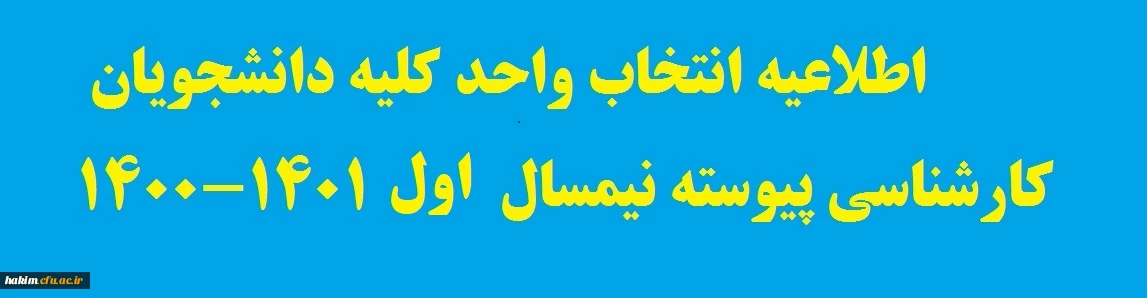 امتیاز دهید : اطلاعیه انتخاب واحد کلیه دانشجویان کارشناسی پیوسته نیمسال اول 1401-1400 2 دوشنبه 22 شهریور 1400 ساعت 14:04