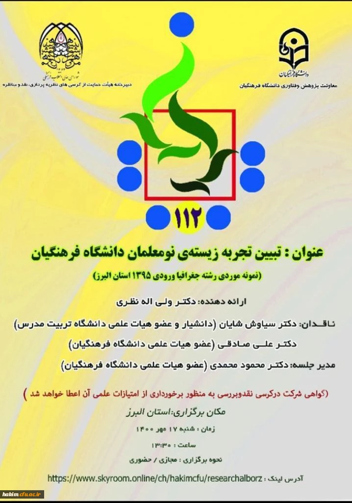 امتیاز دهید : برگزاری کرسی تبیین تجربه زیسته ی نومعلمان دانشگاه فرهنگیان 2 سهشنبه 13 مهر 1400 ساعت 19:09